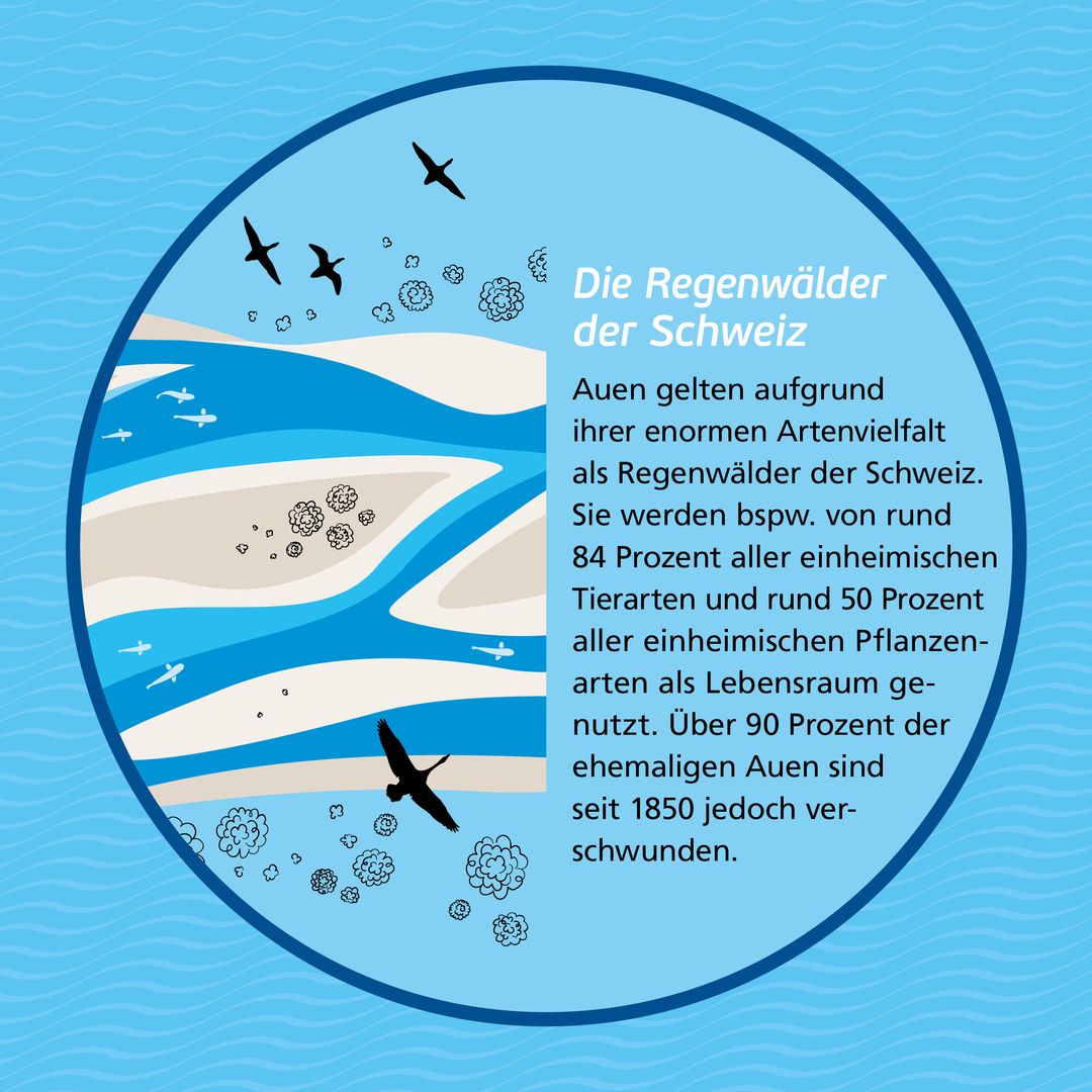 Über 80 Prozent der bekannten 45 000 Tier- und Pflanzenarten der Schweiz kommen in Gewässern und direkt anliegenden Gewässerräumen vor - ein wahrer Hotspot der Artenvielfalt und für uns Menschen unendlich wertvoll: Biodiversität inspiriert, schütz, ernährt und macht glücklich. Doch bei allem was die Natur uns gibt, braucht sie auch unsere Hilfe. Nur noch fünf Prozent des Schweizer Gewässernetzes gilt als intakt. Die Schweiz hat weltweit die vierthöchste Zahl an ausgestorbenen Fischarten und viele Arten gelten als bedroht.