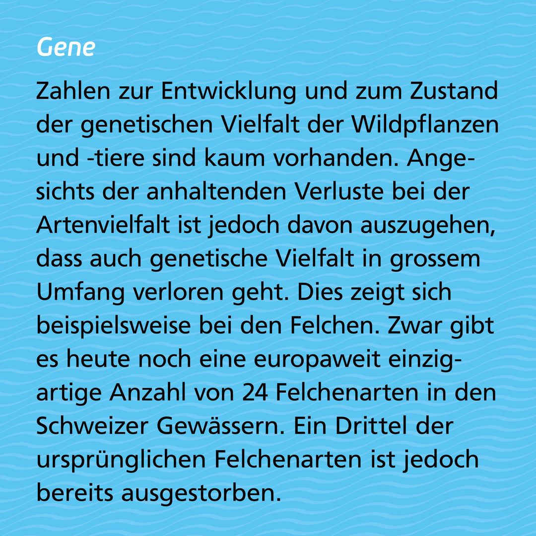 Biodiversität ist die Vielfalt des Lebens auf all seinen Ebenen: Die Vielfalt der Ökosysteme (Lebensräume), der Arten (Tiere, Pflanzen, Pilze, Mikroorganismen) und der genetischen Vielfalt, also der Variabilität und Unterschiedlichkeit der Individuen einer Art. Die Biodiversität in der Schweiz ist heute in einem alarmierend schlechten Zustand. Besonders betroffen sind Gewässer und Feuchtgebiete. Hier fällt der Verlust an Biodiversität besonders dramatisch aus.