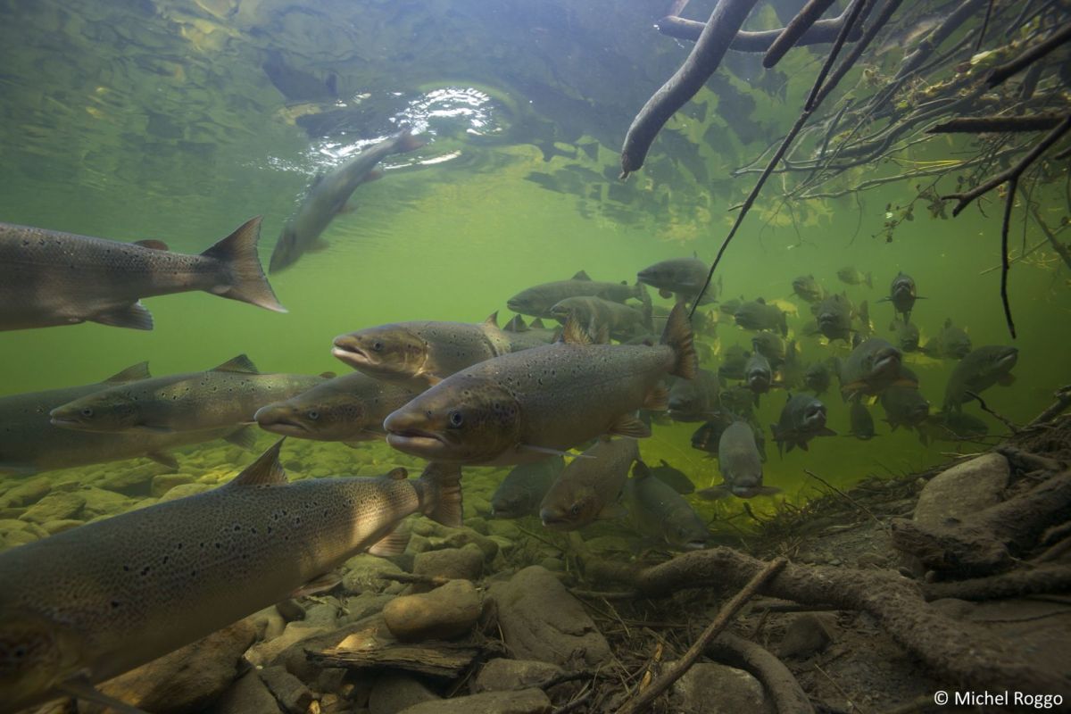 Vor mehr als hundert Jahren schwammen noch rund eine Million (!) Lachse im Rhein. Heute gilt der Lachs in der Schweiz als ausgestorben. Auf ihren Jagd- und Laichwanderungen legen viele Lachse mehrere tausend Kilometer zurück. Sie können täglich bis zu hundert Kilometer schwimmen und dabei Hindernisse von bis zu drei Meter Höhe überspringen. Leider ist das nicht genug um auch die letzten drei verbliebenen Kraftwerkswehre in Frankreich noch zu überwinden. Nur sie stehen ihrer Rückkehr in die Schweiz noch im Wege.